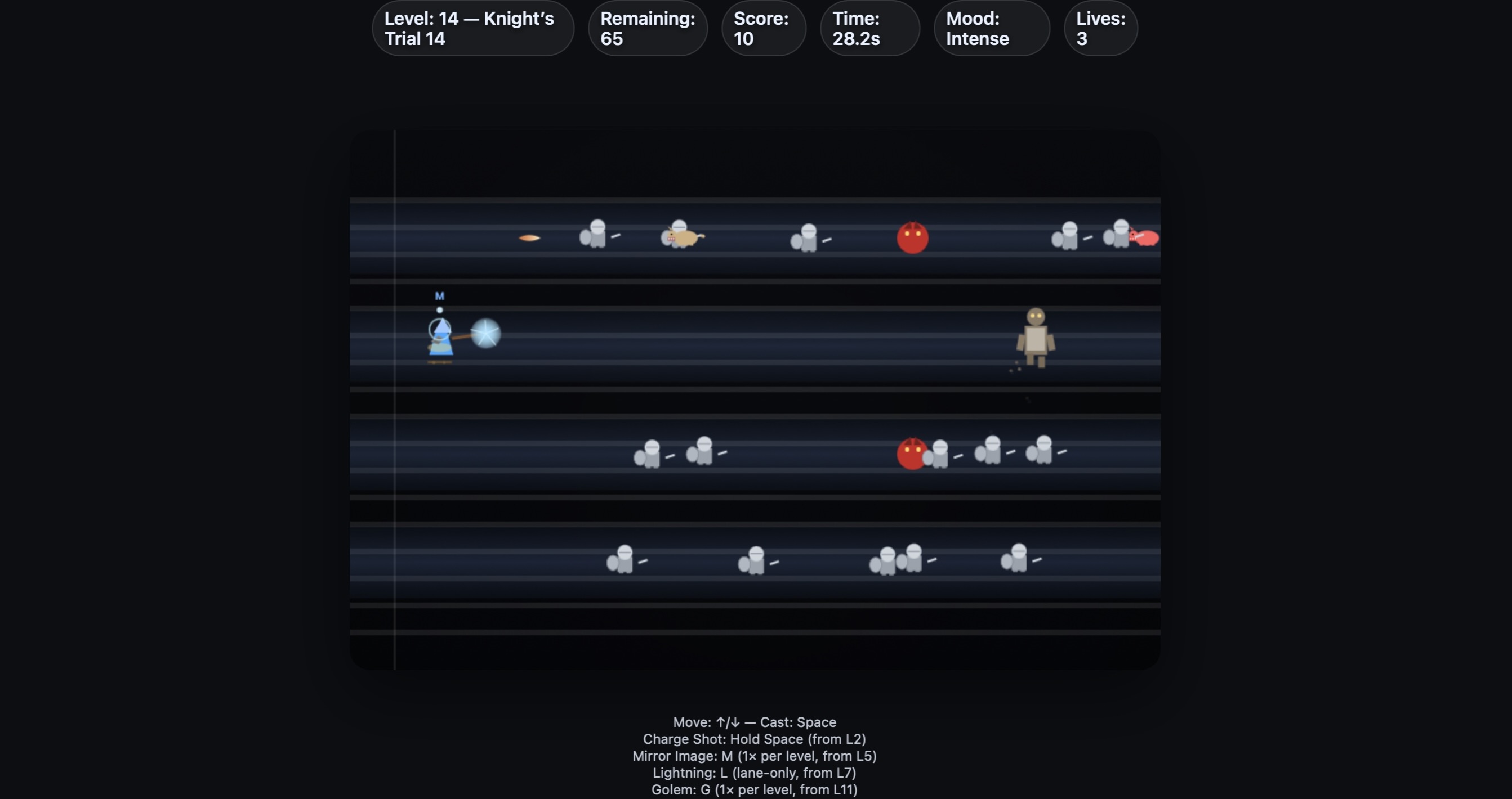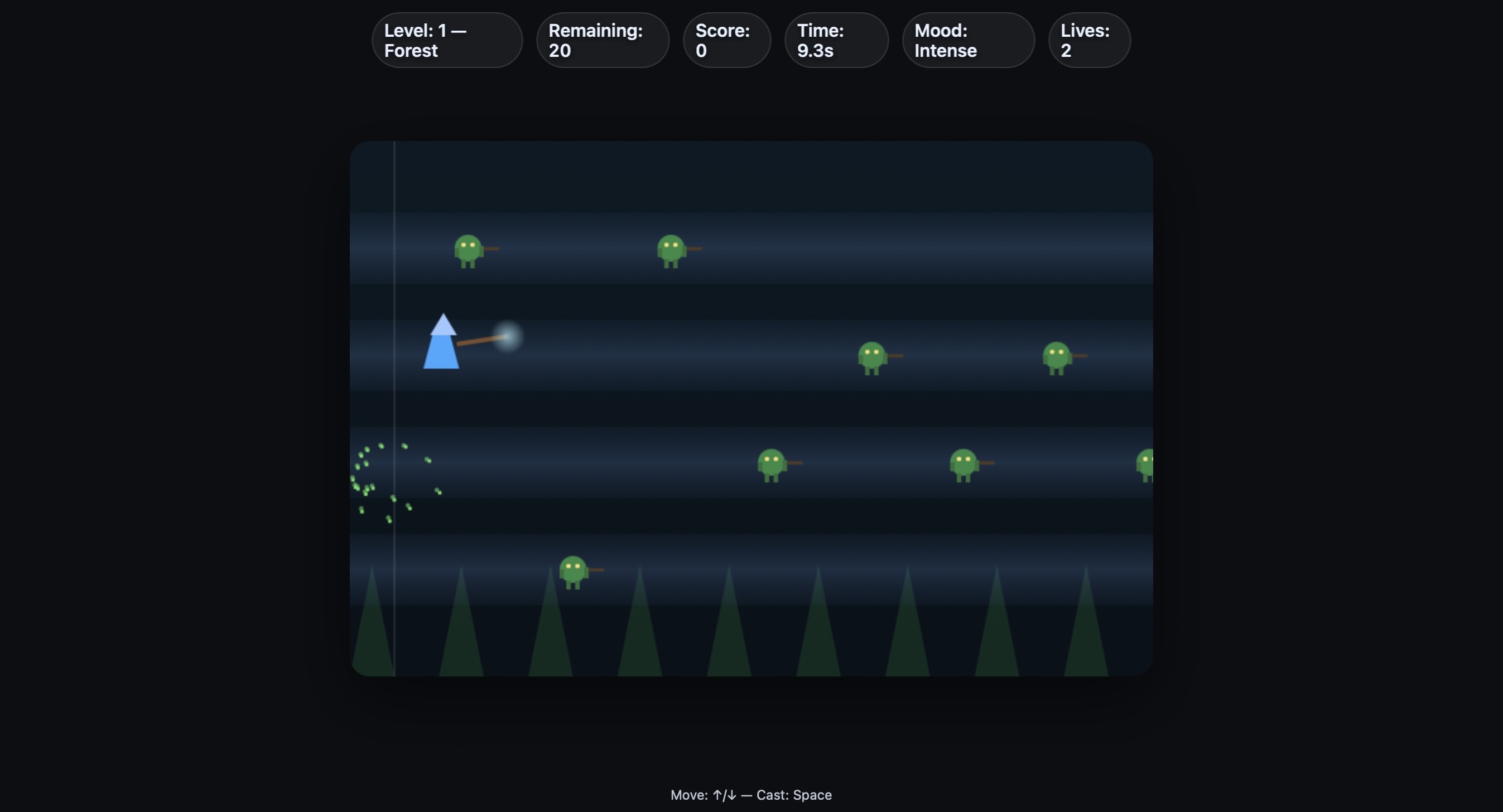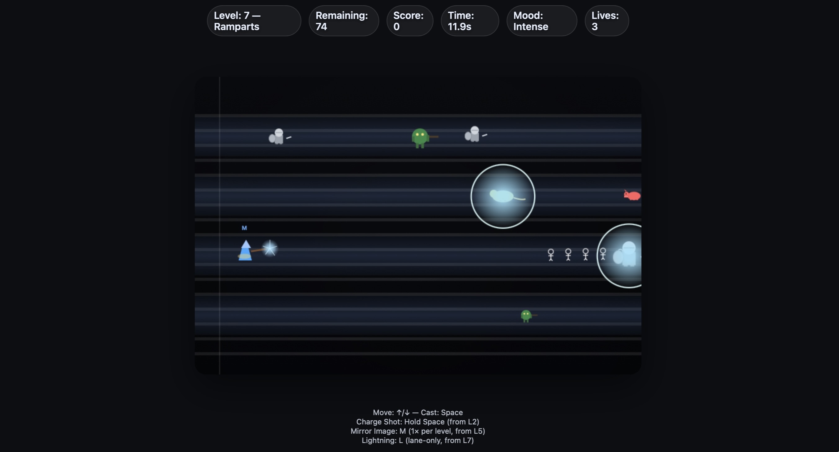 Wizard’s Ascent is a free, browser-based fantasy action game built in pure HTML/JS. Armed with nothing but your staff and quick reflexes, you’ll fight off waves of creatures as you climb higher and higher.